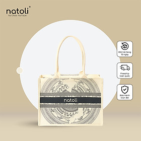 Túi cói vintage, túi đi biển NATOLI đi du lịch, đi chơi có khóa kéo đựng đồ tiện lợi BST Artisan Eco Jute Tote T36